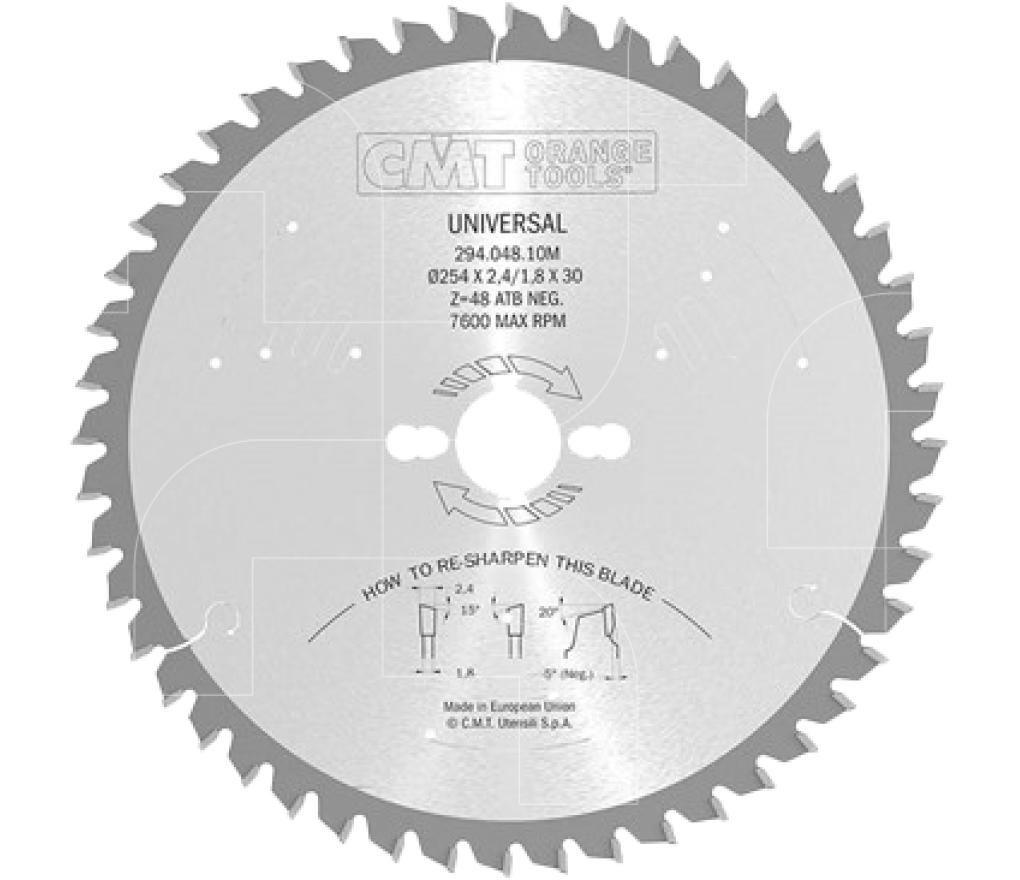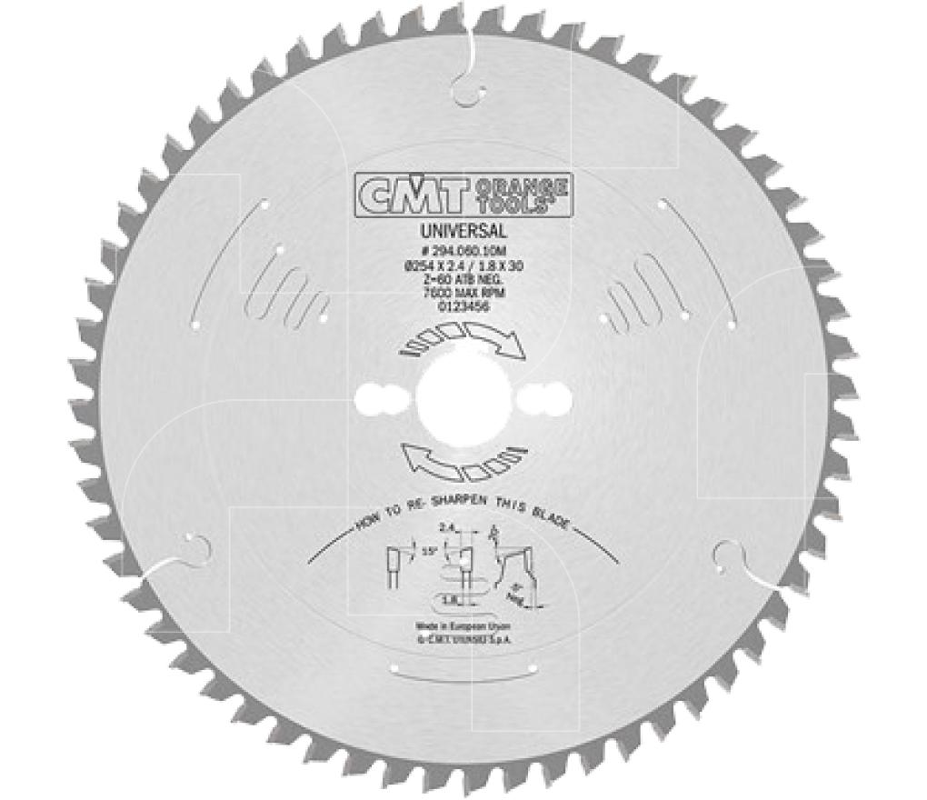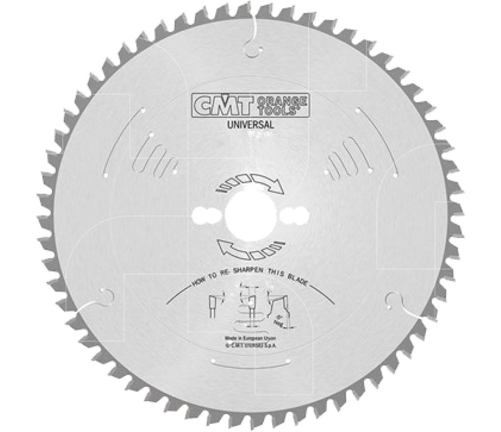 Dun universeel zaagblad met hardmetalen tanden ideaal voor een accu machine zoals stationaire zaagmachines, draagbare en snoerloze machines. Voor het bewerken van alle houtsoorten, multiplex.
