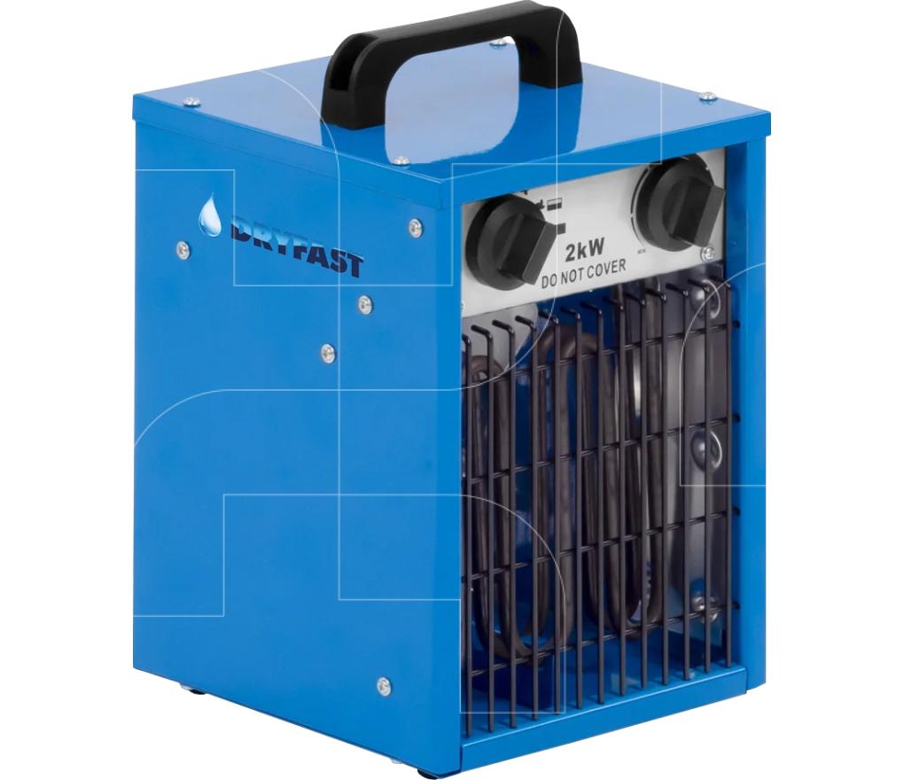 De DEH5 kachel is schakelbaar tussen stand 1 waarbij alleen de ventilator draait, stand 2 met 2,5 kW en stand 3 met 5 kW.