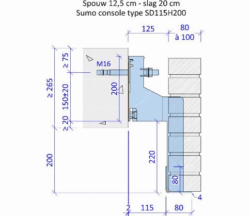 - Door het verschuiven van de regelplaten kan de geveldrager + of – 20 mm in de hoogte worden bijgesteld
