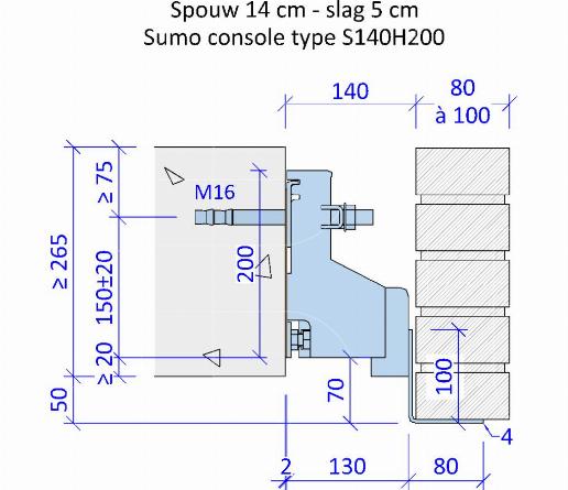 - Door het verschuiven van de regelplaten kan de geveldrager + of – 20 mm in de hoogte worden bijgesteld