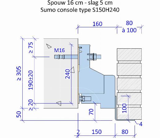 - Door het verschuiven van de regelplaten kan de geveldrager + of – 20 mm in de hoogte worden bijgesteld