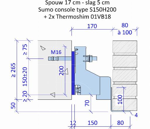 - Door het verschuiven van de regelplaten kan de geveldrager + of – 20 mm in de hoogte worden bijgesteld