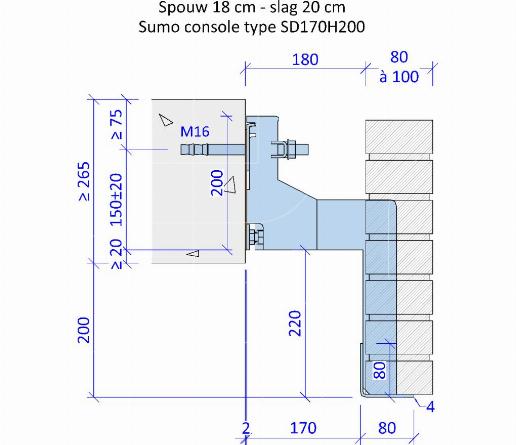 - Door het verschuiven van de regelplaten kan de geveldrager + of – 20 mm in de hoogte worden bijgesteld