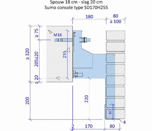 - Door het verschuiven van de regelplaten kan de geveldrager + of – 20 mm in de hoogte worden bijgesteld