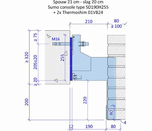 - Door het verschuiven van de regelplaten kan de geveldrager + of – 20 mm in de hoogte worden bijgesteld