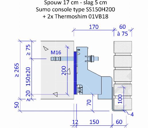 - Door het verschuiven van de regelplaten kan de geveldrager + of – 20 mm in de hoogte worden bijgesteld