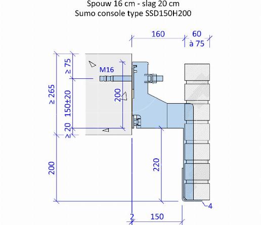 - Door het verschuiven van de regelplaten kan de geveldrager + of – 20 mm in de hoogte worden bijgesteld