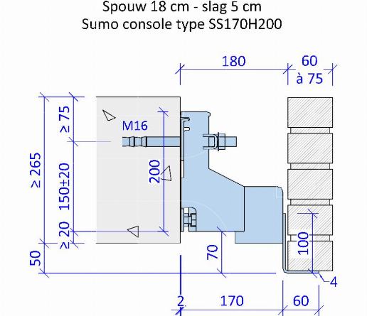- Door het verschuiven van de regelplaten kan de geveldrager + of – 20 mm in de hoogte worden bijgesteld