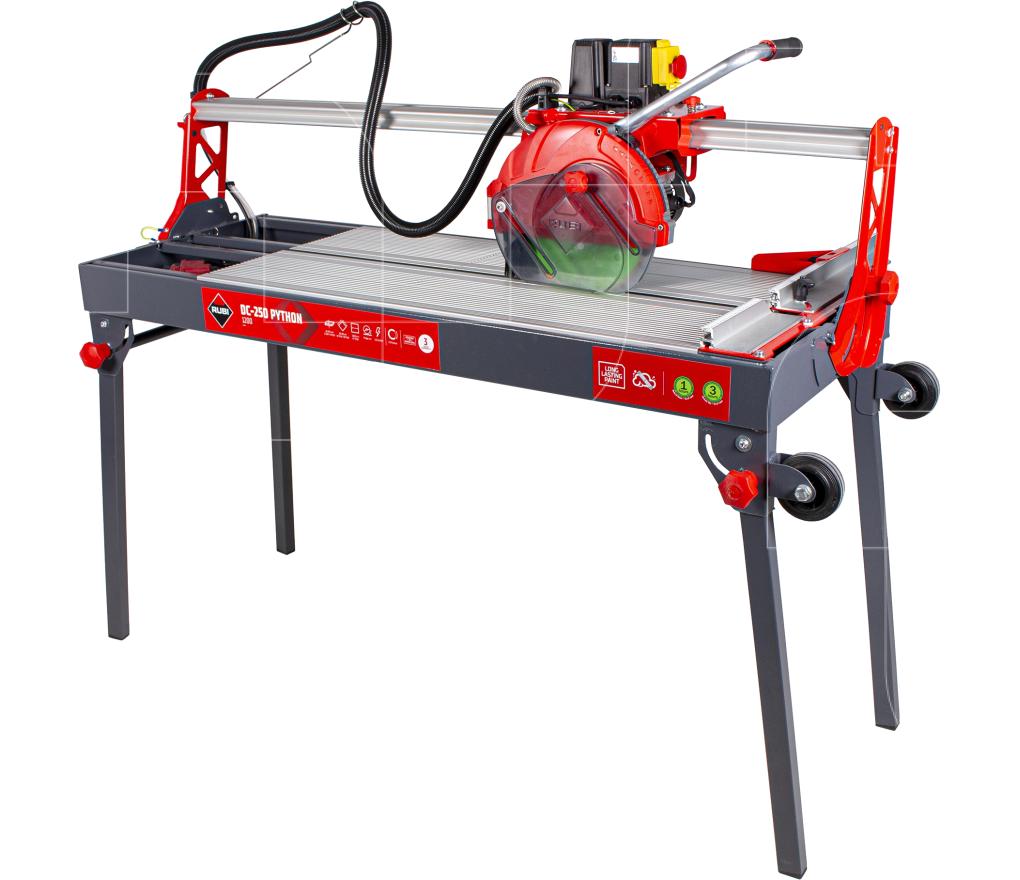- Accessoires: zijtafel, laser en zijdelingse aanslag voor repeterende sneden (instelbaar voor tegels van 8 mm tot 20 mm)