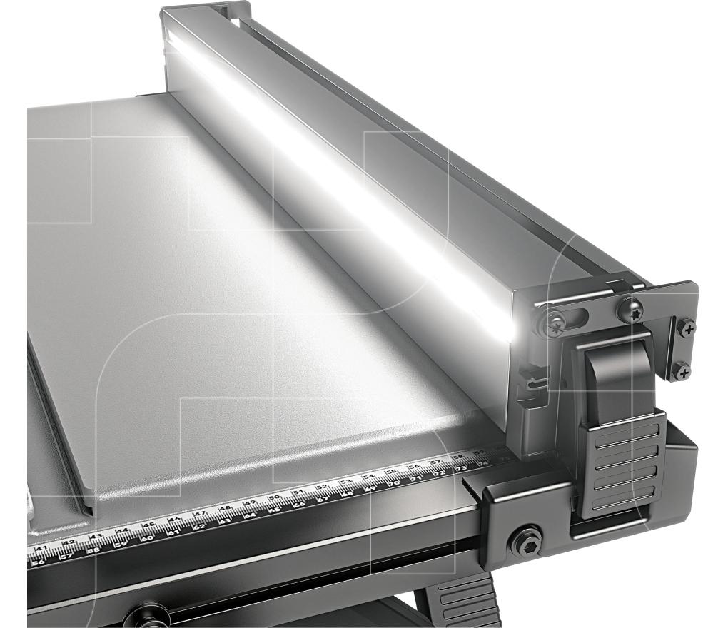 - Geïntegreerd in de parallelaanslag, oplaadbaar via USB-C – altijd goed zicht op het werkstuk