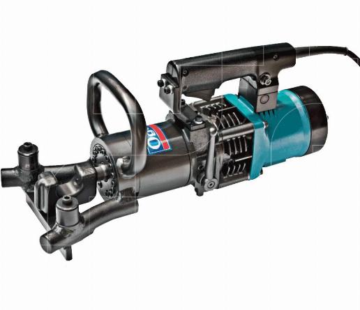 Zelfstandige buigmachine met unieke ingebouwde hydraulische pomp voor het aanpassen van de buighoek van wapeningsstaal D25 op de bouwplaats.