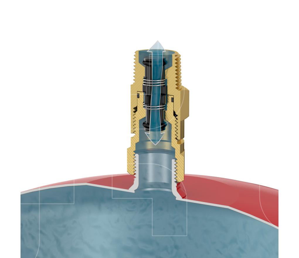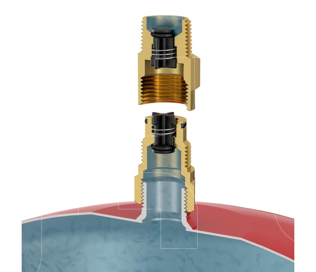 De Flexfast snelkoppeling maakt het mogelijk om zeer eenvoudig onderhoud uit te voeren aan de Flexon expansievaten tot 25 liter. Het systeem hoeft hierdoor niet drukloos gemaakt te worden.