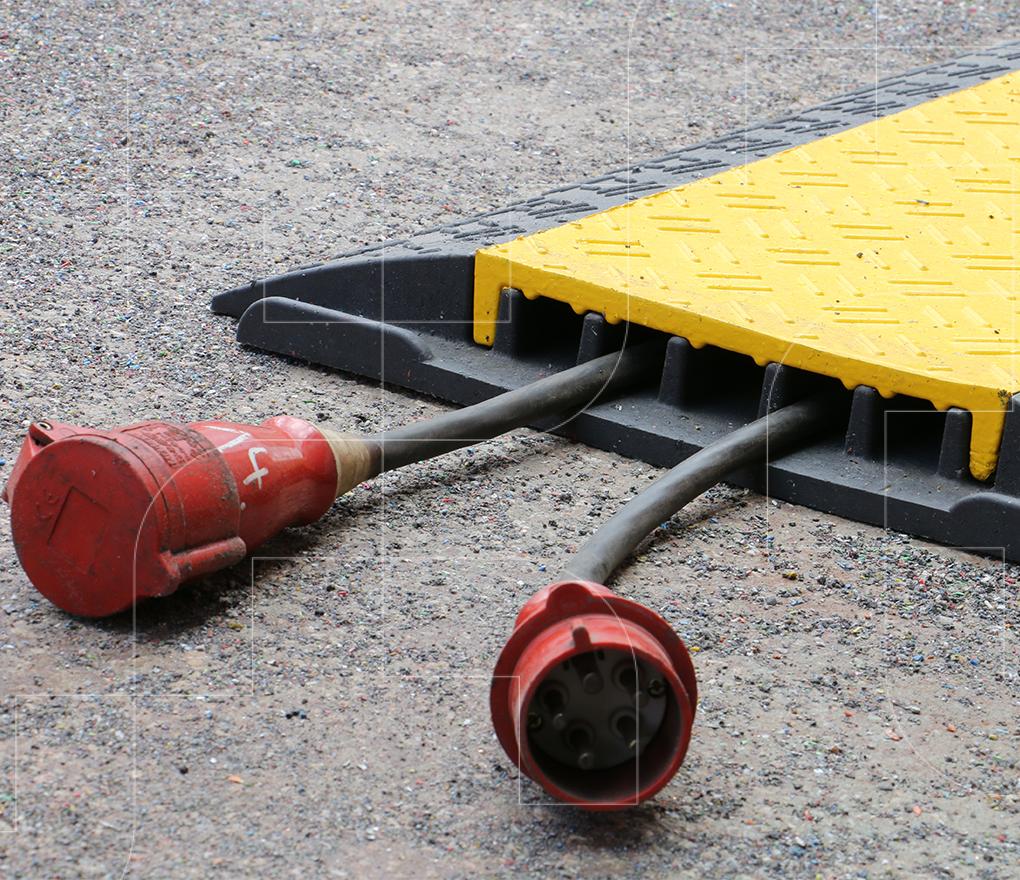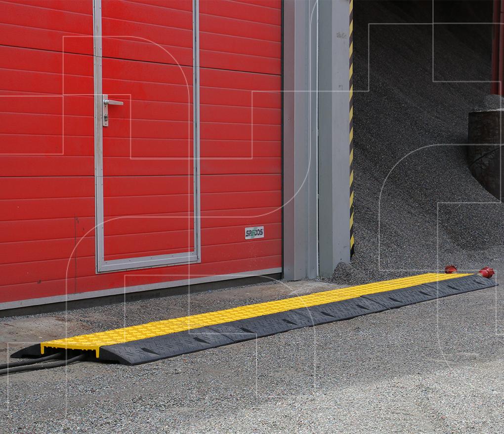 Kabelbrug met deksel beschermt kabels, slangen, pijpen op wegen, in productiegebieden, bij tentoonstellingen, culturele evenementen, etc.