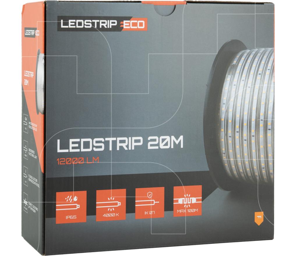 Modulaire lichtslang van 20 m zonder stroomkabel. Ideaal als segment in een doorlusbare setup tot 100 m. Stevige 4000K werfverlichting met eenvoudige, veilige koppelingen.
