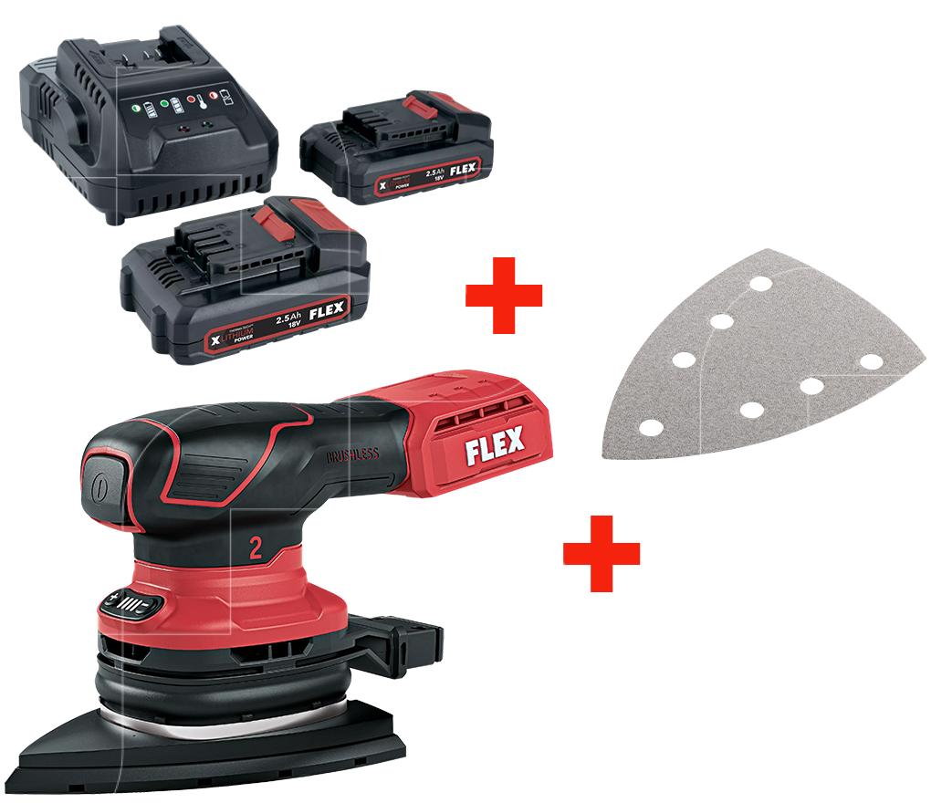 Actieset 18V deltaschuurmachine met accupakket en 25 stuks schuurpapier P180